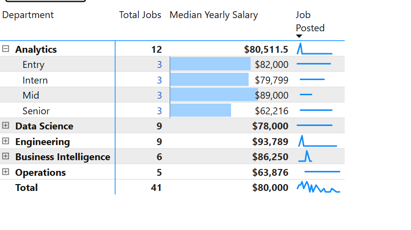 Departmentand, to make them expand into sub-rows like Entry/Intern/Mid/Senior, dragExperienceunder Department -